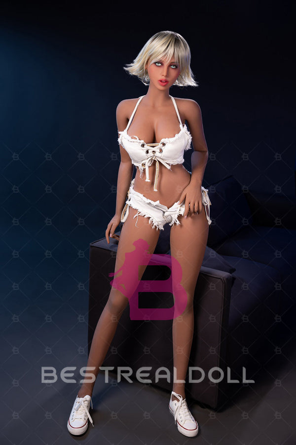 1. Britney is a 163cm sexy love doll with short grey hair. With seductive light blue eyes, sexy juicy pink lips, medium boobs, round ass and long legs, this beautiful woman becomes very popular with customers.