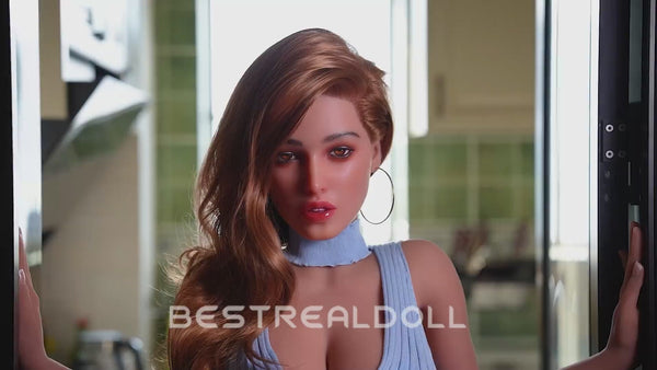1. Ailish is a sexy lady with a realistic silicone head & soft TPE body. The implanted blonde curly hair matches well with her delicate makeup, her medium boobs and round ass make her look so sexy and curved.