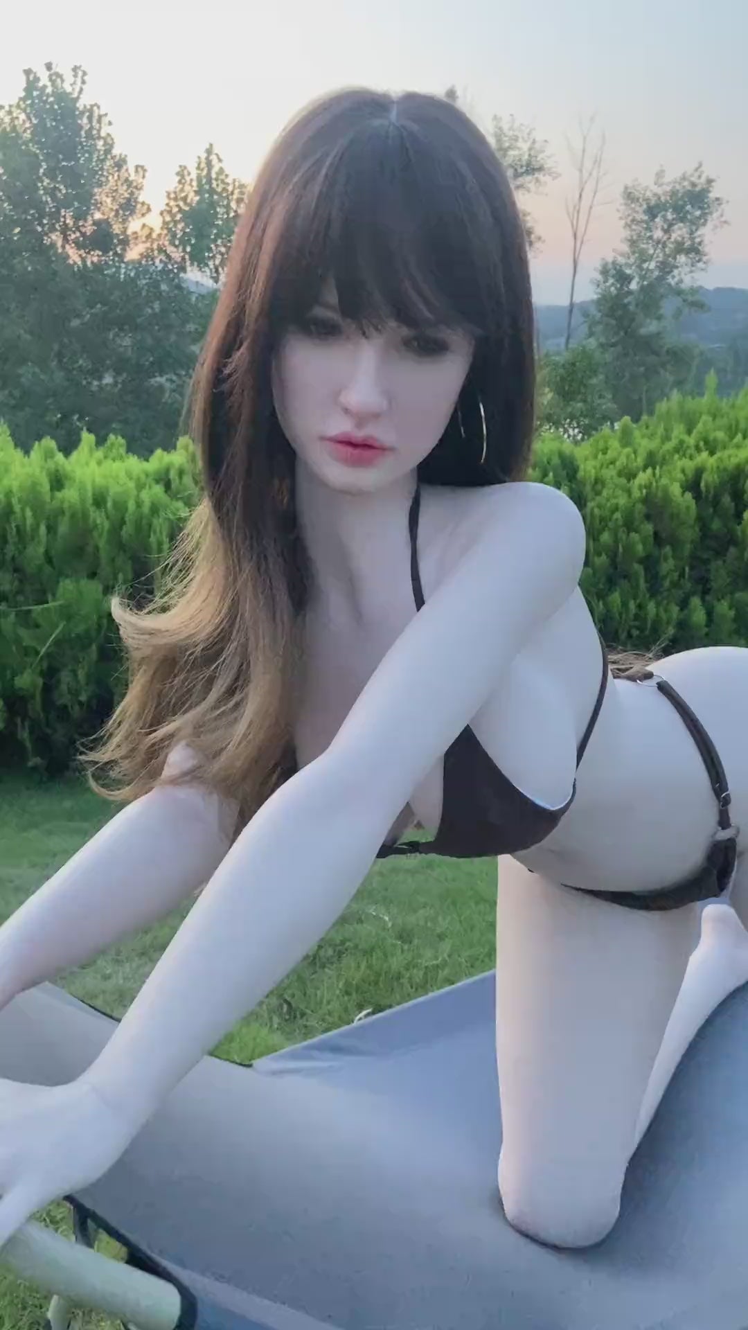 1. Veronica is a 160cm love doll with an elegant face and natural skin color. She has attractive medium boobs and round ass, the beautiful long curly brown hair matches well with her curve body.